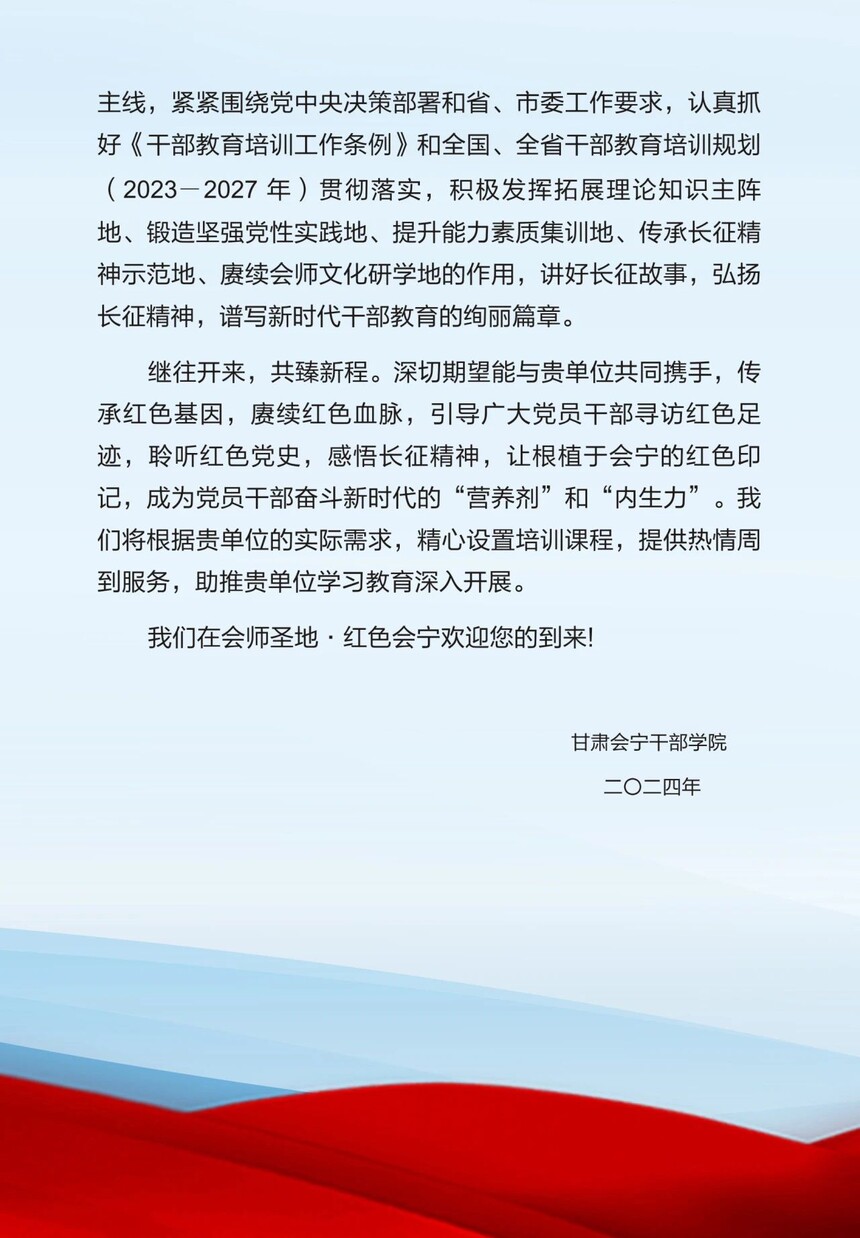 网站首页 >> 新闻中心 >>通知公告 >> 相约会师圣地,传承红色基因 | 甘肃会宁干部学院诚邀您!